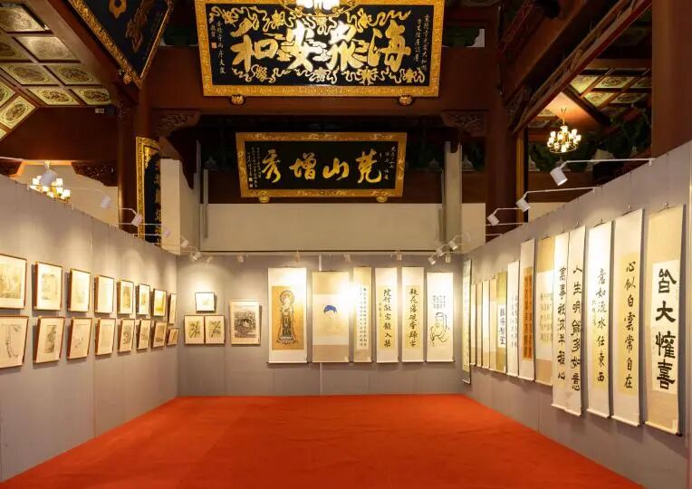 11月12日下午,由浙江云林书院、杭州佛学院主办的“千江印月·翰墨流辉”——第九届云林公益书画联展在灵隐寺直指堂开幕,云林书院慧澄法师,书院艺术顾问卢家华、苏雪峰、高阳,杭州多个街道文化站负责人,参展单位书画院作者代表和云林书画研习社学员等80余位嘉宾出席开幕式。