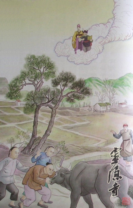 法苑珠林上记载:唐高祖武德年间,隰州大宁地方,有农夫贺永兴,有一次,邻家的牛,侵犯了他田里的农作物,贺永兴在盛怒之下,竟用绳系紧牛舌,猛力将舌拉断,可怜的牛,满口鲜血淋漓,惨痛难言。邻里乡人纷来围观,见此情状,都指责贺永兴的手段太残酷了。