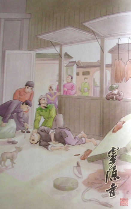 有一天,须某把屠刀安放在房门上面,忽然听到两只老鼠在门上,激烈打闹,须某仰面探看,不料门上屠刀被震动,突然掉落下来,正堕入须某口中割断舌头,当场死亡。