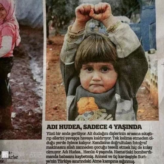 经过调查,土耳其媒体认为这是一个名叫AdiHudea的孩子,她父亲死于2012年发生于叙利亚哈马省艾库贝尔(哈马附近的一个村庄)的一场杀戮事件,即惨绝人寰的艾库贝尔大屠杀,当时包括儿童和妇女在内的许多平民被效忠当局的武装分子和安全部队所杀害。之后这小女孩一直和她的母亲,以及另外三个兄弟姐妹一起生活在Atmen难民集中营。