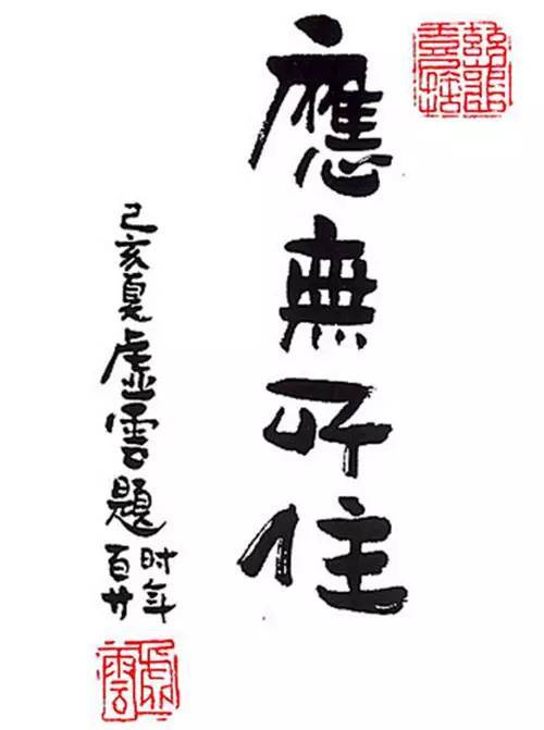 五祖于是用拄杖在碓头上敲了三下便离开了。慧能禅师领会了五祖的意思,便于当天晚上三更的时候,偷偷地来到五祖的丈室。五祖用袈裟将慧能禅师围起来,以免他人发现,并且给他讲解《金刚经》。当讲到“应无所住而生其心”的时候,慧能禅师豁然大悟。原来一切万法不离自性!慧能禅师一连说了五个何期,以表达自己悟道时的惊喜和见地: