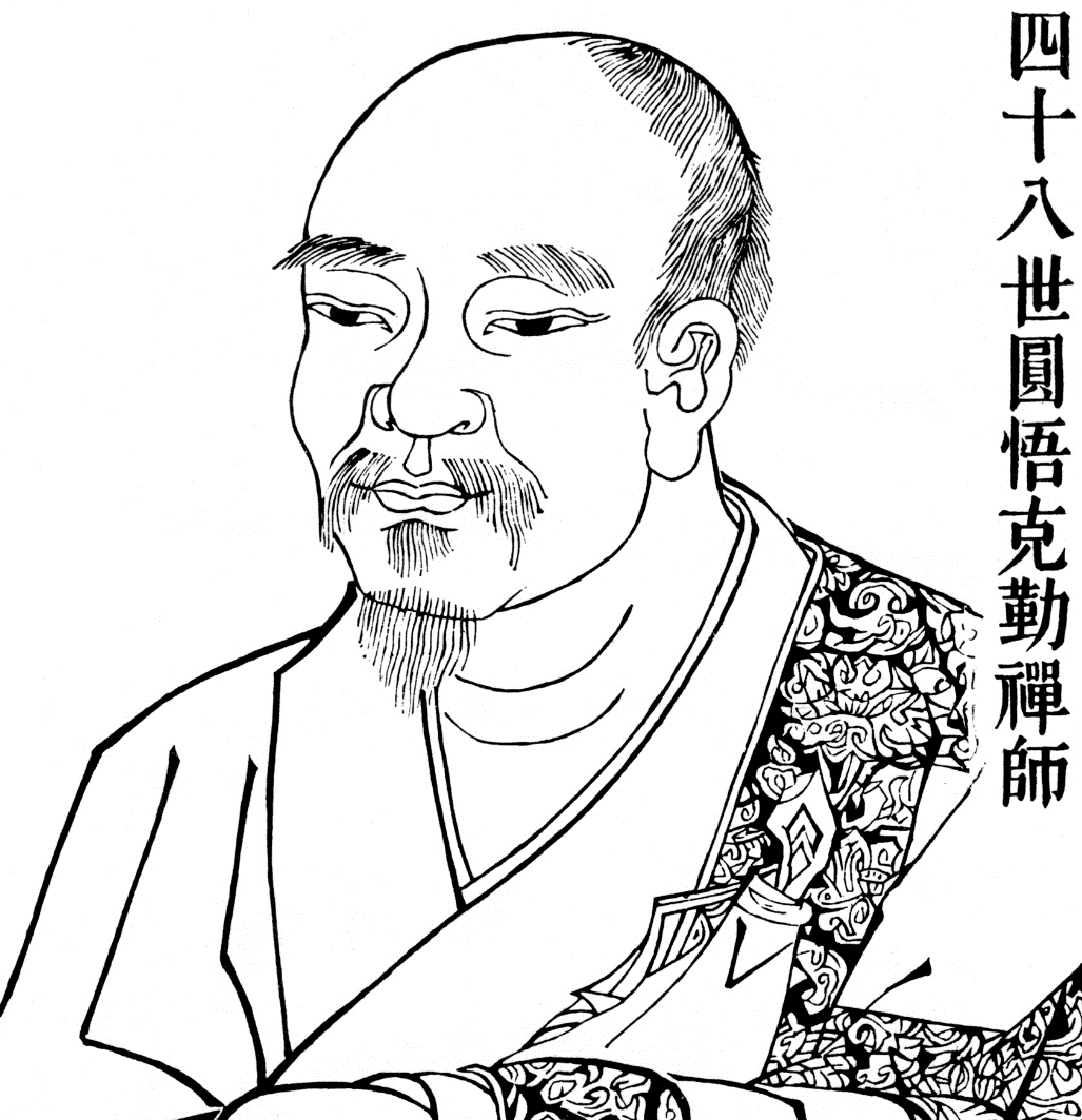 圆悟克勤禅师,俗姓骆,彭州(今四川境内)人,其祖上世代以儒为业。克勤禅师儿时记忆力极好,日记千言。一日,克勤禅师偶游妙寂寺,见到佛书,读之再三,如获旧物,怅然不已,谓同伴曰:“予殆过去沙门也。”于是便立志出家,依寺僧自省法师落发,后又从文照法师学习讲说,从敏行法师学习《首楞严经》,不知疲倦。