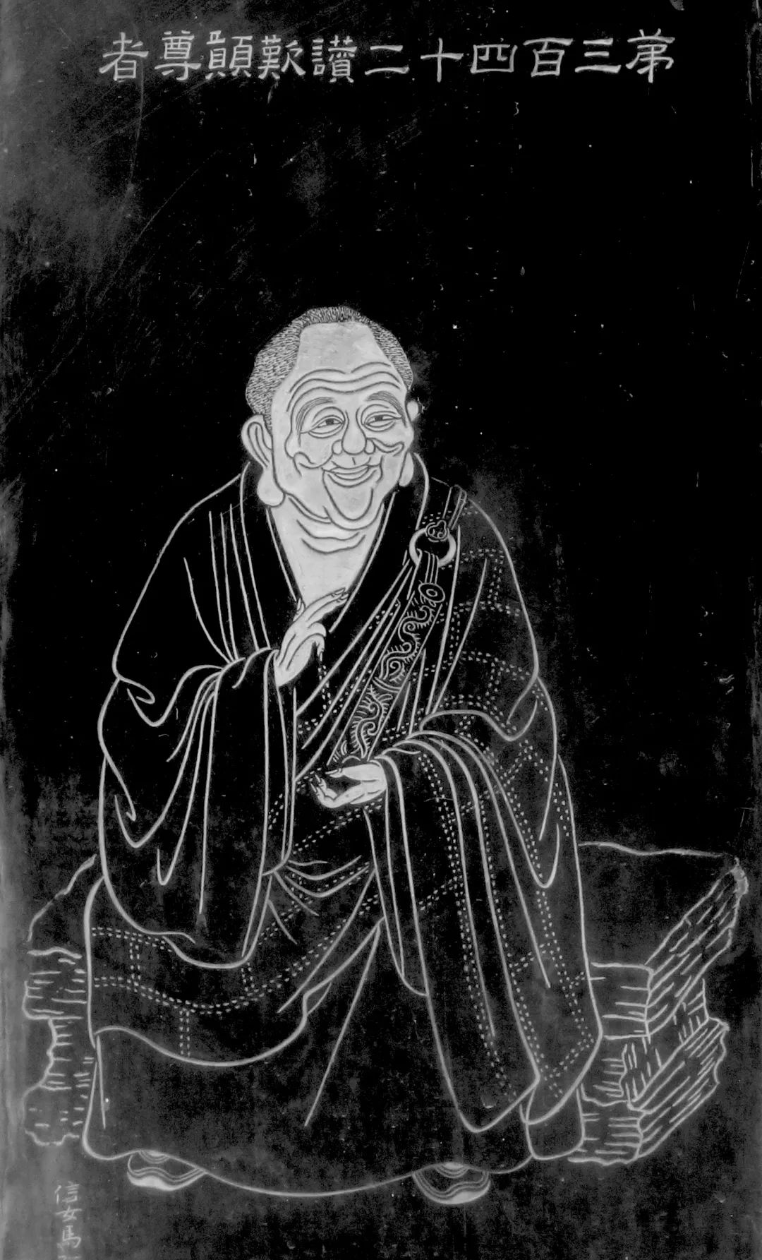 五百罗汉第叁佰肆拾贰尊赞叹愿尊者,赞叹,即称美其德。《文句》卷二云:“发言称美,名赞叹。”《行事钞》下三亦云:“美其功德曰赞,赞文不足,又称扬之为叹。”