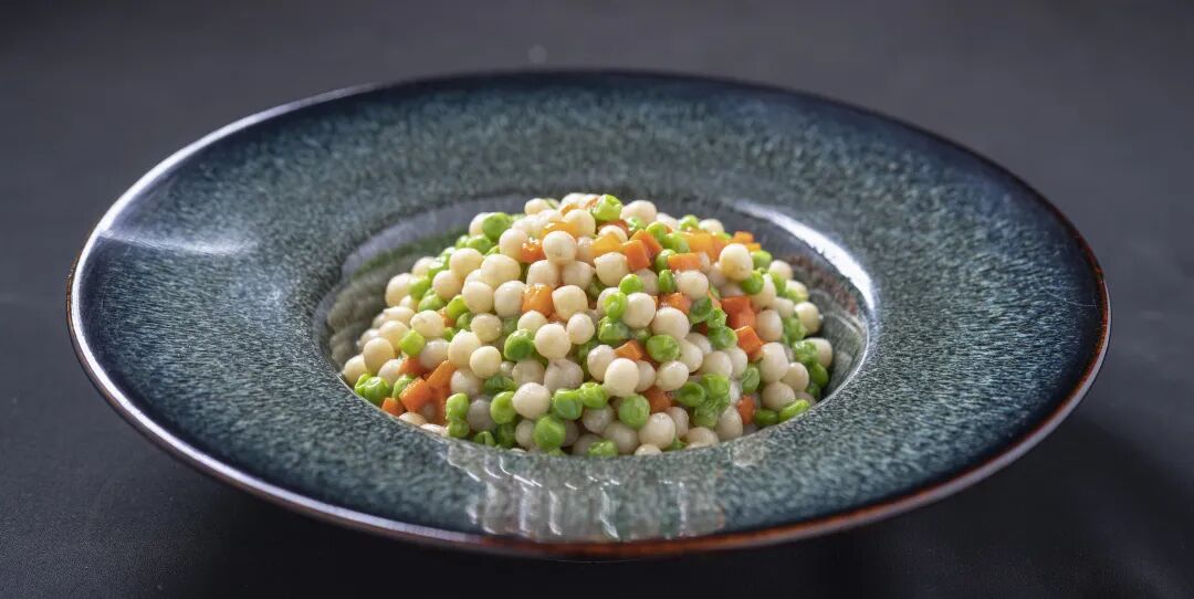 云何有实(小炒芡实)菜品色泽丰富,白、绿、红三色相间,似一幅精美的画卷。
