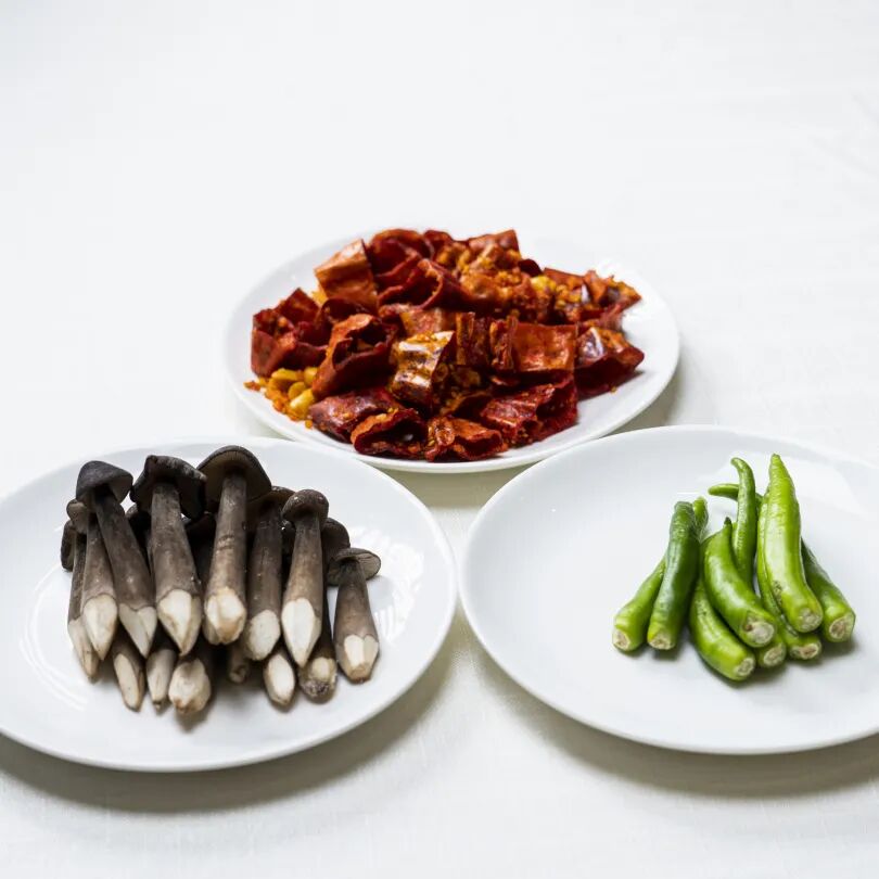 烹制好的香鸡枞菌,色泽鲜艳,肉质细嫩,辣而不燥,鲜而不腥,甜而不腻,无论是搭配米饭,还是作为面条的佐菜,都能让人的味蕾瞬间觉醒,其独特的香味能增强肠胃蠕动,促进消化液分泌,改善食欲。因此,鸡枞菌被誉为“开胃菜”“下饭菜”。