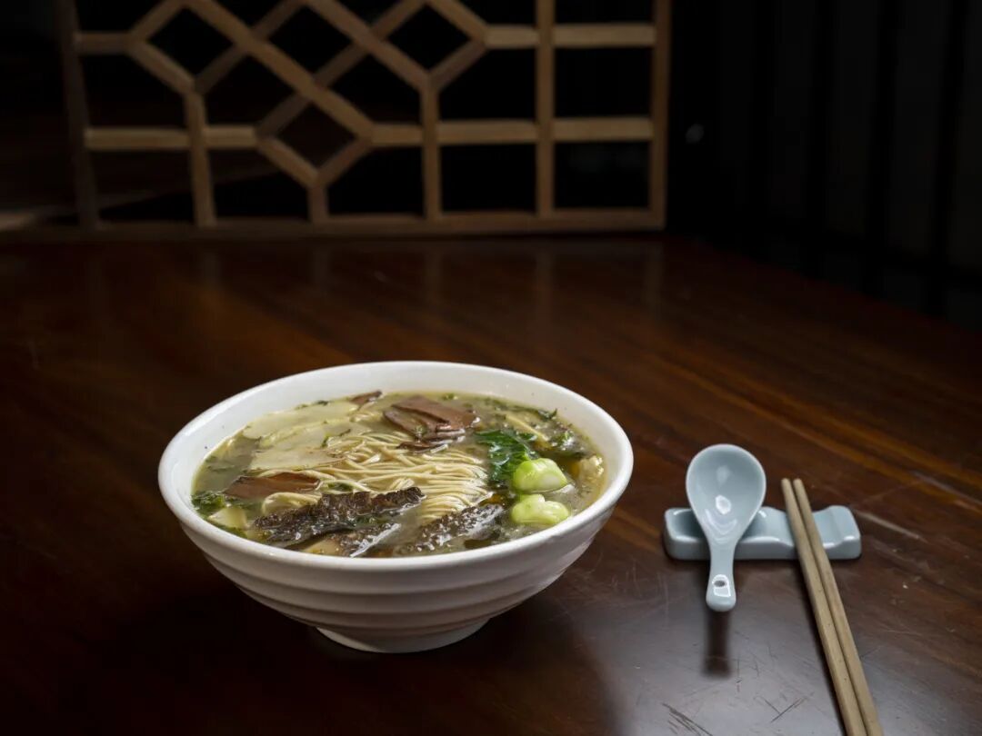 细长的面条沉浸在乳白色的汤汁中,上面有翠绿的雪菜,几片洁白的笋片点缀其间。雪菜的鲜、笋片的脆、面条的筋道,完美地融合在一起。