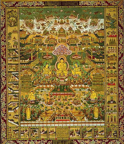 这时善财童子等二千人前来顶礼听法,发菩提心,其中善财童子一心求菩萨道,说颂问教,文殊师利指示他去求访善知识。