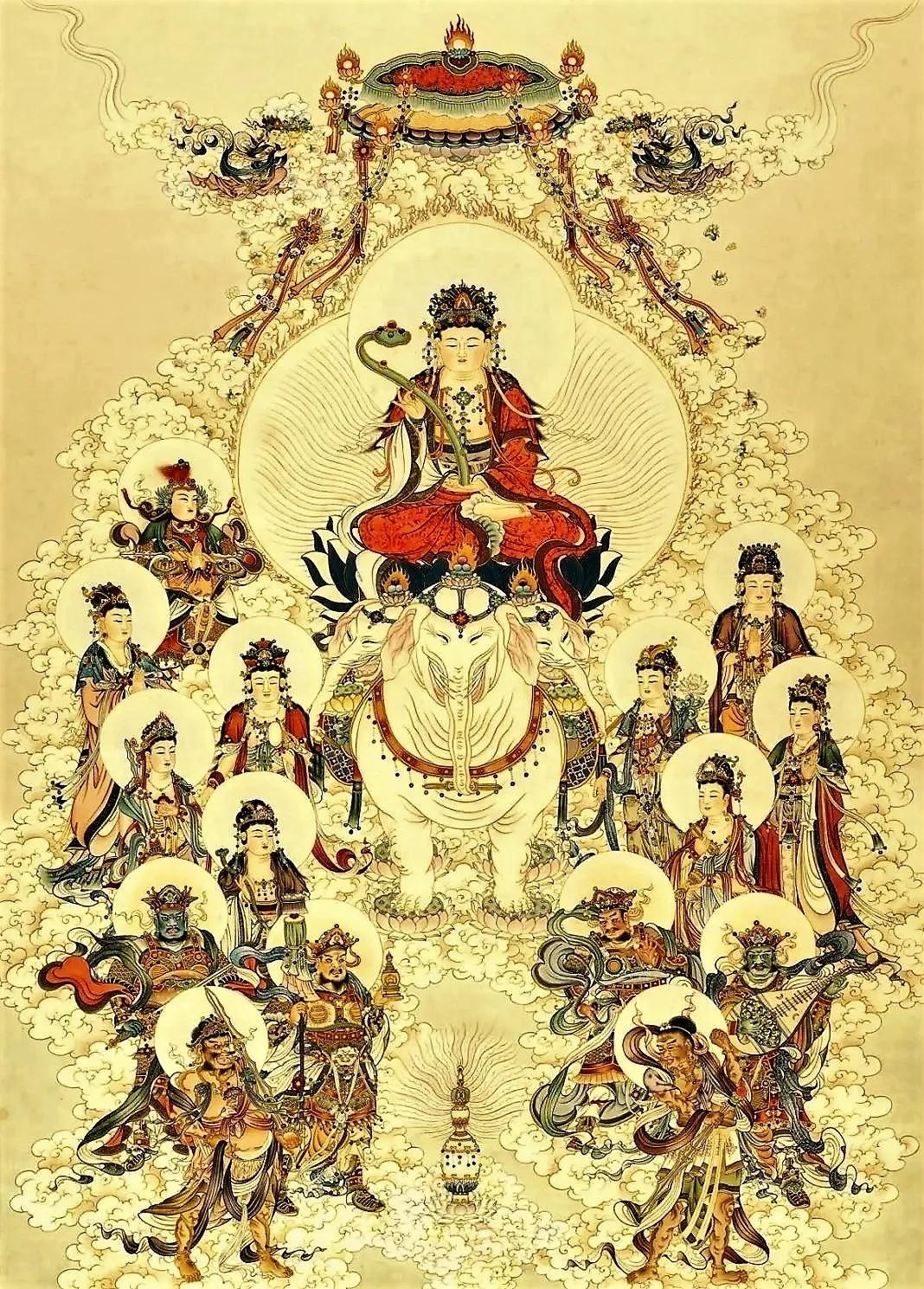 普贤行愿是超胜一切的大愿王,它感果的增长量达到了最极圆满。如果将每一愿都以大心量而作意,以全法界心,尽法界量,吞纳十方三世世界海,具有如是愿王的德相,才成为普贤行愿。