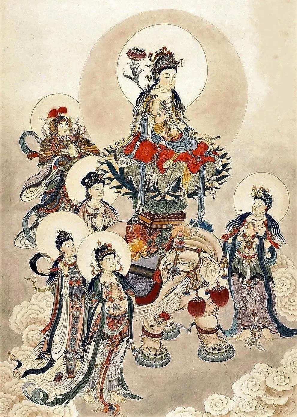 此处"诸佛",不仅仅指三世佛,而是包括了一分觉悟乃至圆满觉悟的一切具德者。也就是说,不但要请诸佛住世,还要祈请所有成为众生引导者的诸菩萨们,有学、无学果位的声闻和缘觉,以及一切善知识们。由于他们在世间利益众生,也是由因缘决定——有因缘就住世,因缘尽了便入灭,因此我们要创造缘起,周遍地劝请住世,以彼等觉悟者来引导未觉悟者。