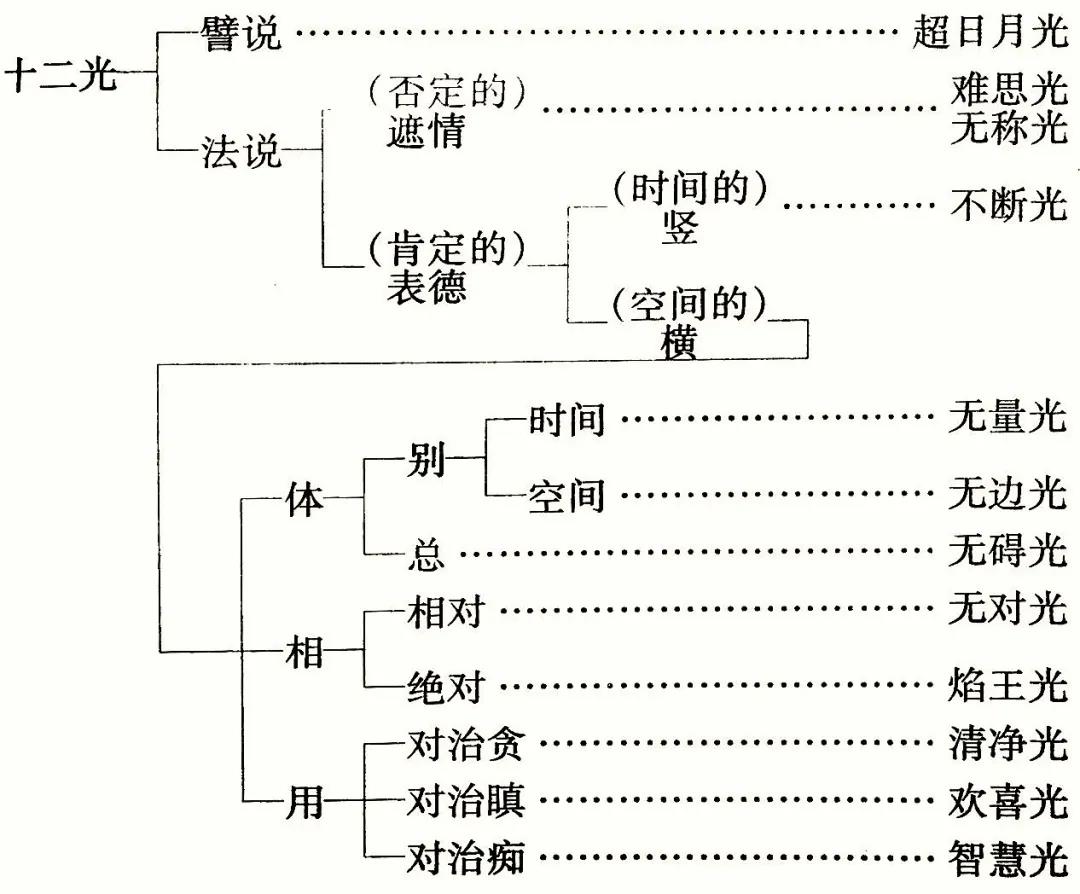 阿弥陀佛的光明内具种种微妙殊胜的德用,十二光德是阿弥陀佛威神光明的具化,能对治众生厚重的烦恼。