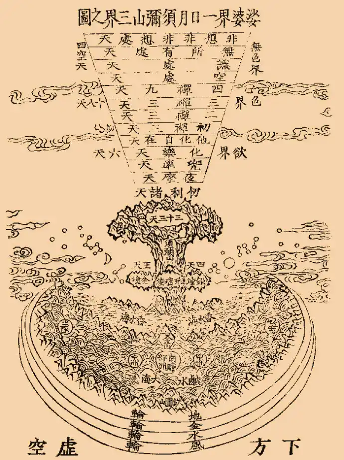 按佛经所描述的世界,我们所住的世界中心有一座须弥山,帝释天就住在须弥山顶的善见城,统领其余诸天。须弥山四周各有八天,加上中央帝释天,合为三十三天,此即欲界六天中的忉利天。忉利天以人间百年为一日,寿长一千岁,其种种受用较之人间要殊胜得多。