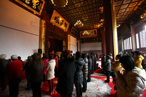 炉香乍爇,法界蒙薰,诸佛海会悉遥闻,随处结祥云,诚意方殷,诸佛现全身,南无香云盖菩萨摩诃萨(三称)