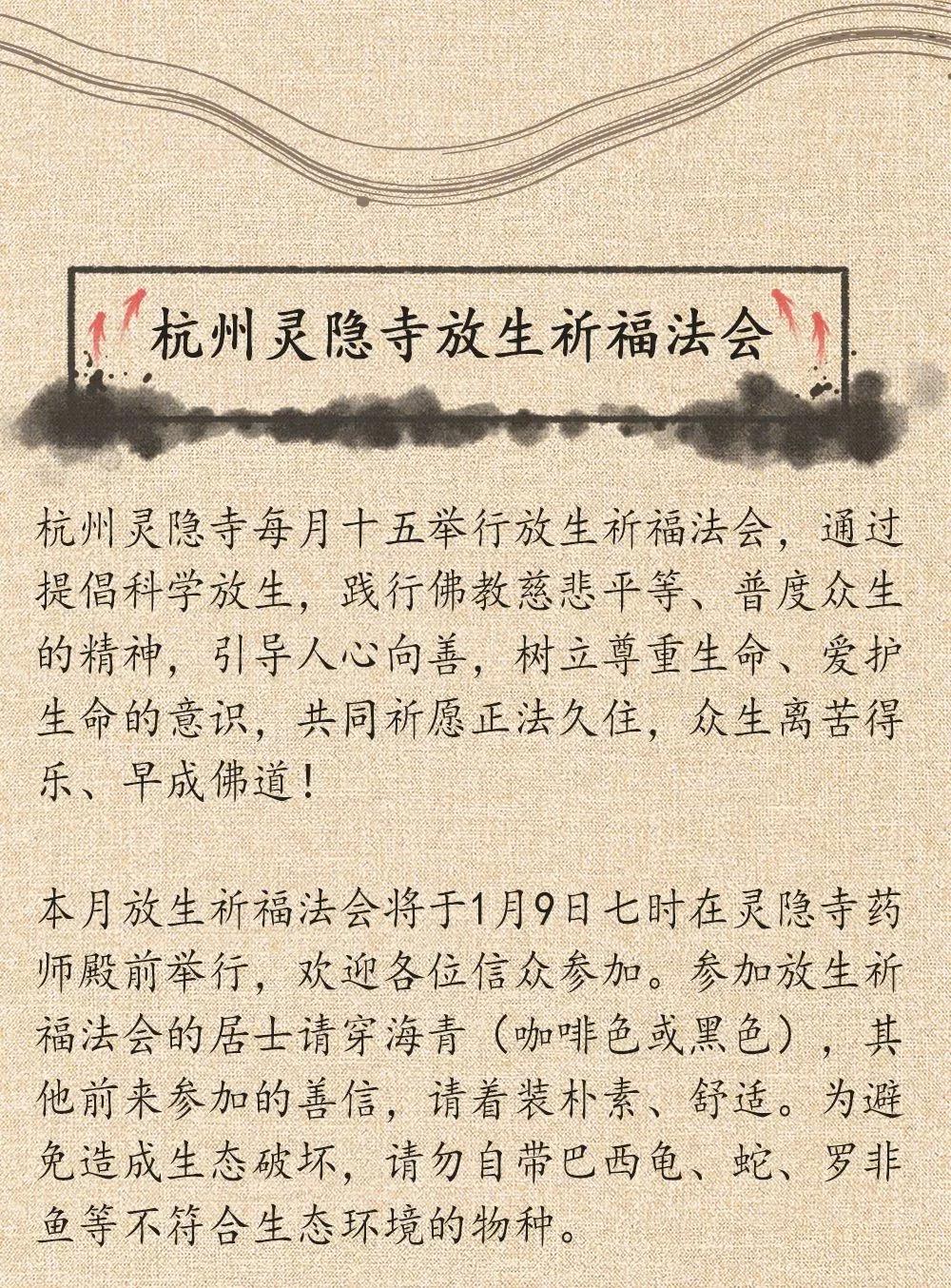 法讯|2020年1月9日灵隐寺放生祈福法会预告