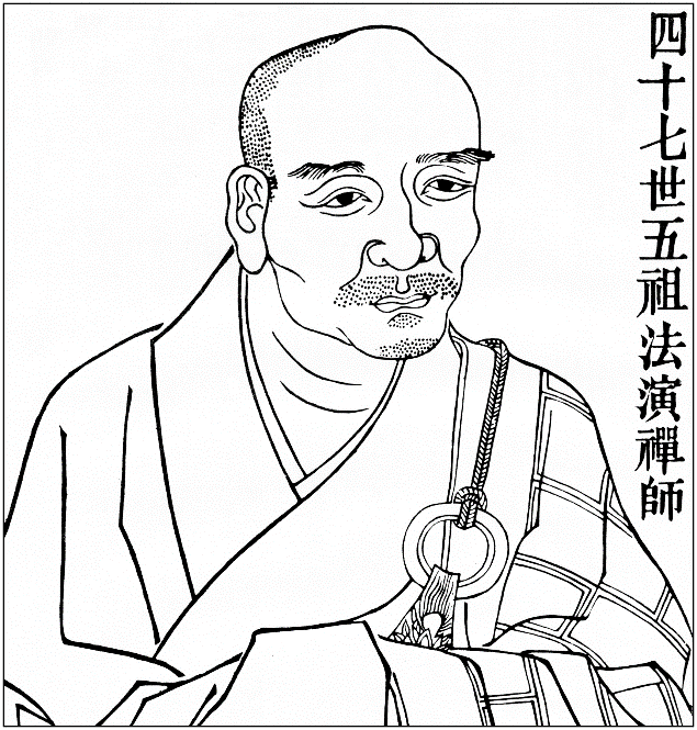 蕲州五祖法演禅师,白云守端禅师之法嗣,俗姓邓,绵州(今四川绵阳)人。法演禅师三十五岁时出家受具足戒,后往成都,游历讲肆,学习《唯识》、《百法》等论。