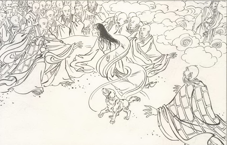 这样的诚意,终于使得目连的母亲提早离开了地狱,免得长远遭受折磨。但终于因为罪孽深重,不能够升到天上,脱胎变成了都城里一条母狗。每天在街上跑着,吃着不干不净的东西。