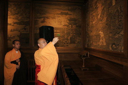 灵隐寺方丈光泉法师为济公壁画洒净