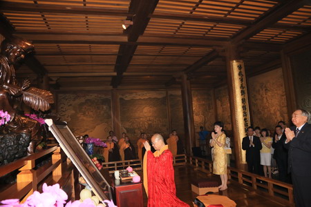 2012年8月2日上午,灵隐寺在济公殿举行了济公壁画洒净仪式,法会由方丈光泉大和尚主持,曾发心捐助灵隐寺济公殿的装修工程的台湾长荣集团张荣发居士偕夫人一行参加了洒净仪式。