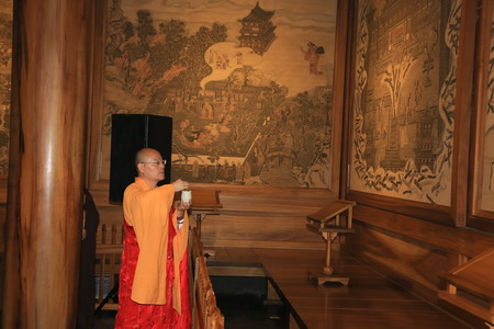 光泉法师为张居士介绍济公壁画