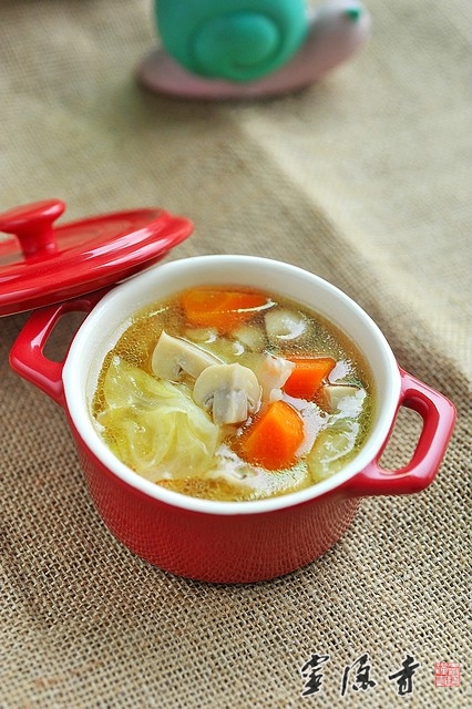 素肉片、包心菜、胡萝卜、蘑菇、白味噌、姜片