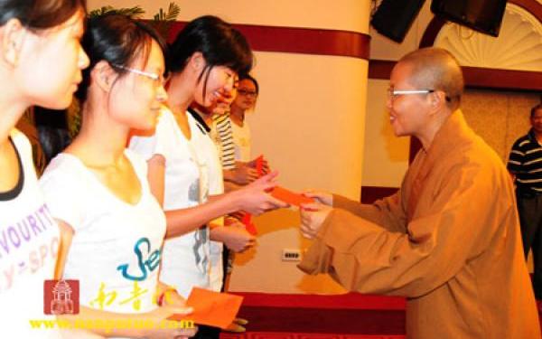 此次活动共资助131名贫困大学生,其中南普陀寺慈善会资助15名贫困大学生,共发放助学金4.5万元。普陀法师代表南普陀寺慈善会亲自将助学金发放到学生手中,并祝愿他们发奋学习,将来为社会做出更大的贡献。