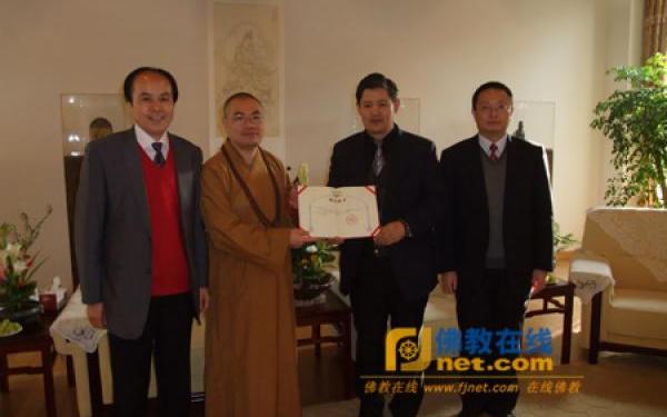 2011年11月24日,在"2011汉传佛教讲经交流会"期间,中国佛教协会王健秘书长会见了永福禅寺住持月真法师,对永福禅寺关心和支持中国佛教协会工作网站筹建表示感谢,并向月真法师颁发了捐赠证书。