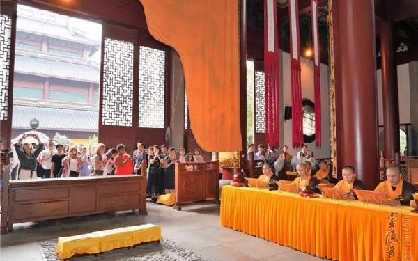 灵隐寺为配合国家"一带一路"宏伟战略目标的实施,走出国门弘扬佛法,充分发扬佛教文化对促进各民族文化交流和文明融合的独特优势,广泛开展对外交流,"云林茶会"品牌,多次走出国门,以多种形式和手段,与国内外友好人士广结善缘,展示佛教中国化的魅力。中印佛教及相关友好交流国际研讨会 3月14至15日,印度加尔各答举行玄奘寺建寺五十周年庆典系列活动。中国佛教协会派出由副秘书长光泉大和尚为团长的代表团,参加庆典开幕式、重建加尔各答玄奘寺洒净祈福奠基仪式、"中印佛教及相关友好交流:历史与未来"国际研讨会等活动。灵隐寺