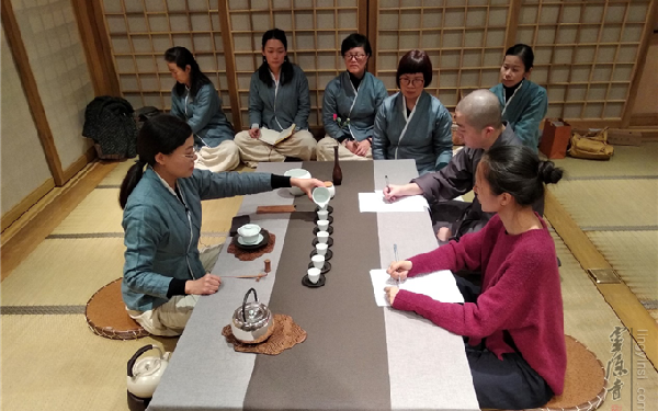 云林茶修组第二期中级班学员结业考核 时光流逝在日月中,一场冬雪深藏着一份收获。 2018年12月20日,云林志工团茶修组第二期中级班正式结业,13名学员参加了结业考核。未来,他们将带着饮茶仪式感——煮水、静坐、行茶、品茶……感受茶带给我们的清净、悠扬。 本次结业考核内容主要包括茶席布置、仪表仪容、行茶仪式以及茶汤表现等。考核期间,学员对茶品进行介绍,随后开展行茶十二式,每一个细微的动作都决定着学员成绩的高低,也触动着每一位评委老师的标准。行茶结束,评委老师都会对每位学员的表现进行综合评价。学员们正在考核行茶十二式评委陈绿芳老师为学员记录