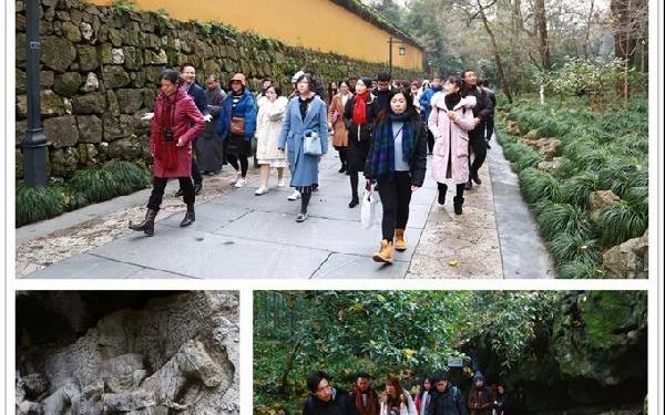 12月23日,来自澳门文物大使协会、澳门文遗研创协会的青年代表一行赴杭州进行考察交流。浙江云林书院作为中华优秀传统文化传播与交流的平台,同时也是杭州西湖文化特使协会的合作伙伴,在杭州灵隐寺与澳门两协会青年代表、杭州西湖文化特使代表等举行了一场内涵丰富的文化交流活动。 上午,云林书院带领30多位青年朋友实地探访了"灵鹫飞来——佛教艺术探微"文化走读路线,跟随历史的脉络为大家讲述了杭州"东南佛国"称号的缘起、飞来峰佛教艺术造像的特色以及亭台水榭的人文典故,随后参观了庄严恢弘的灵