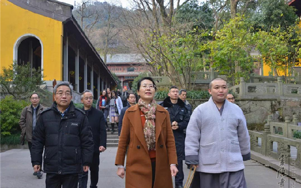 陈红英副市长一行调研安全工作 12月29日下午,杭州市政府陈红英副市长一行来到杭州灵隐寺,调研年度安全工作落实情况。灵隐寺监院智光法师陪同调研,并详细介绍了寺院安全工作具体实施情况。了解寺院员工消防知识掌握情况 杭州市政府副秘书长杨建华,杭州市人大常委会教育科学文化卫生工作委员会主任姚坚,杭州市民宗局党组副书记、副局长唐明壮,杭州市民宗局宗教处处长胡胜军等参加调研。 本着"保一方平安、预防为主、防消结合"的工作方针,杭州灵隐寺树立"隐患险于明火、防范胜于救灾、责任重于泰山"的思想,年度安全工作按照计划有序进行,各项安全工作得到了