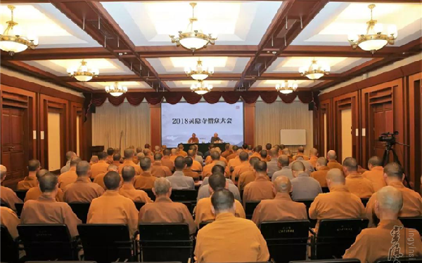 根据省市有关部门的部署,杭州灵隐寺开展反邪教宣传教育活动。2018年9月4日晚上,杭州灵隐寺召开全体僧众大会,布置反邪教宣传教育工作。 杭州灵隐寺方丈光泉大和尚结合邪教组织给社会和民众造成极大危害,从如何认识邪教、邪教的特点、何谓附佛外道、邪教的危害性等方面进行分析,层层剖析。他要求杭州灵隐寺全体僧众,带领职工并教育志工,发挥佛教正本清源、扶正祛邪的正能量,防范和抵制邪教,维护佛教的健康发展和社会安定和谐,坚持走佛教中国化道路,共同为实现中国梦而努力奋斗! 光泉大和尚说,一定要能够认清邪教真面目,识别邪教特点,特别是分清佛陀正法与附佛外道的区别,了知邪教的危害性。他强调,正知正见,是让