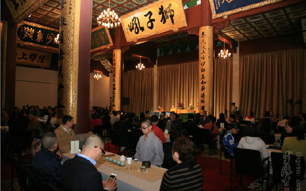 4月27日夜,以"清净无为"为主题的灵隐寺春季"云林茶会"在直指堂举行。来自社会各界的嘉宾茶友、善信居士约200余,在云林夜幕中,同享丝竹悦耳、清茗飘香。 香花茶"三道"供佛 茶会在清净庄严的香花茶供佛仪式中拉开帷幕。由灵隐寺常住法师带来的香花茶"三道"表演,既是对佛陀的供养,也为与会来宾带来净与美的享受。同润法师主持 茶会现场,主持人同润法师向茶会来宾介绍禅茶艺术。所谓"茶禅一味"。茶,品人生浮沉;禅,悟涅槃境界。尘心洗尽兴难尽,世事之浊我可清。居士们的