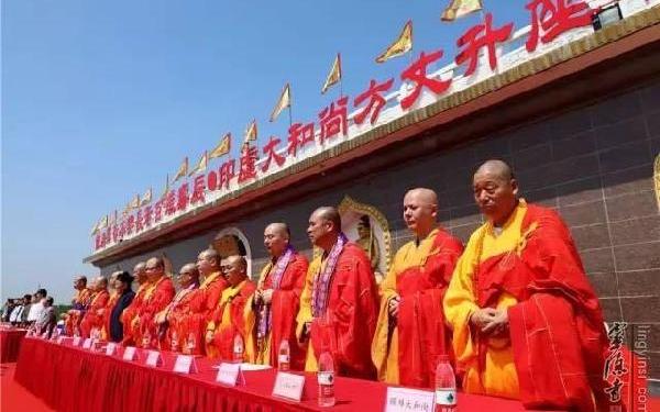 庆典现场 2017年5月5日,新洲报祖禅寺佛光普照,道场生辉,钟鼓齐鸣,嘉宾云集,一派祥瑞庄严的气象,本乐长老百岁寿辰暨印虚法师升座大典隆重举行。中国佛教协会副秘书长、浙江省佛教协会副会长、杭州市佛教协会会长、灵隐寺方丈光泉法师受邀出席活动,来自全国各地诸山长老百余人莅临致贺。 本乐长老致辞 上午8点45分,报祖寺佛旗飘扬,红毯鲜艳,佛堂庄严,梵音清扬。报祖寺监院带领迎请队伍至山门祈请处,礼请印虚法师升座。光泉法师为其授衣,随后来到报祖寺正山门前,振锡说法,开正山门;中国佛教协会副会长、海南省佛教协会会长、深圳市佛教协会会长印顺法师在大雄宝殿为