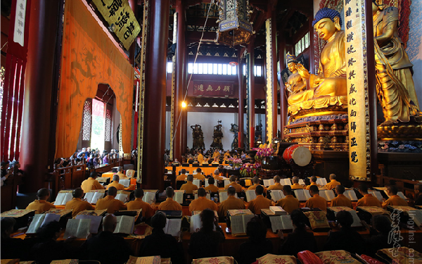 结夏安居 共修华严 为谨遵佛制,严持戒律,精进道业,树正法幢,2017年5月10日,农历四月十五,杭州灵隐寺两序大众,在方丈光泉大和尚的带领下,依佛制,于早课时间在大雄宝殿举行夏安居的结界、羯摩仪式,灵隐寺2017年结夏安居于此正式开始。 光泉法师主法 精进道业 "炉香乍热,法界蒙熏,诸佛海会悉遥闻。随处结祥云,诚意方殷,诸佛现全身,南无香云盖菩萨摩诃萨……"梵呗阵阵,旗幡飘扬。当日上午,由灵隐寺方丈光泉大和尚主法,在药师殿还隆重举行了"2017灵隐寺安居共修华