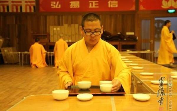 在浴佛节即将到来之前,为了庄严浴佛法会与提高僧人在日常行为中的威仪,灵隐寺常住法师与杭州佛学院教理院的学僧聚集在杭州佛学院,共同学习佛教礼仪中的茶礼。 为了此次茶礼学习班能够成功顺利进行,在去杭州佛学院之前,灵隐寺常住已经对参加茶礼学习的法师进行培训,并进行了现场演练。因此在茶礼学习班中,灵隐寺法师不仅是学员,也是教员,他们将对杭州佛学院的学僧进行为期一个月的培训。在茶礼培训中,他们将一整套的茶礼分成若干环节,针对具体的环节进行培训与练习,在不断重复的练习中,将自己身中不符合威仪的身口意改正过来,使之如法如律。 佛教的茶礼是体现佛教礼仪的重要窗口,也是展现佛教行者修行的重要平台,更是接