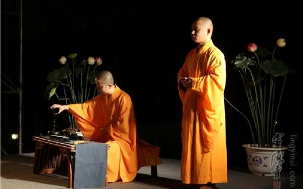 6月12日晚,一年一度的春季"云林茶会"在灵隐寺大雄宝殿前举行,社会各界嘉宾茶友、大德护法、善信居士两百多人于月华与桂香中听古乐,品禅茶,与法师们同席谈禅论道。 静心、专注、从容,最终至于单纯,这是品茶之意义。禅,左为示,左为单,合起来就是表示一种单纯,一种单纯的心。所以,禅理与茶理本来就相通,二者源出一味。 禅茶供佛之后,法师和居士们发心为现场嘉宾供养琴艺与管乐表演。在千年古刹灵隐寺,聆听这天籁般的古乐,所有的喧嚣与烦扰渐行渐远。 另一边,手中捧着法师、茶人用心泡出的茶,大家的身心随着茶叶渐渐舒展开来,用心感悟这茶中三昧。化解戾气,成就和气,这是一杯感恩的茶