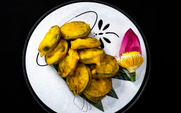 秋池偶遇(藕夹)是一道色、香、味俱佳,外脆里嫩、美味可口、老少皆宜的佳肴,在我国的餐饮文化中有着悠久的历史。炸藕夹是一门技术活,需要注意控制油温,避免过高或过低,以保证藕夹的口感和营养成分不受影响。藕夹不仅美味,其营养价值也不容忽视。莲藕含有丰富的植物蛋白质、膳食纤维和多种维生素,有助于消化和增强免疫力。原料:莲藕、老豆腐、生姜等。基本做法:制作准备:将莲藕洗净去皮,切成藕片。为了增加风味,可以在切好后撒一点盐静置15分钟,再用清水冲洗。素馅调味:将老豆腐搅碎放入碗中,加入切碎的姜、盐、胡椒粉、玉米淀粉,搅拌均匀后放置一旁入味。藕夹制作:将调好味的素馅夹入两片藕之间,用手轻轻捏合,确保封口紧密
