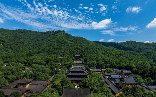 宿清远峡山寺【唐】宋之问香岫悬金刹,飞泉界石门。空山唯习静,中夜寂无喧。说法初闻鸟,看心欲定猿。寥寥隔尘市,何异武陵源。首联栩栩如生地描绘了古刹屹然与巅峰峭壁的雄姿,和飞泉划破石门的壮景。颔联极力渲染了禅师与空山深夜修习静虑,心住正定的静寂场景。而“说法初闻鸟”又说明了静寂不是一潭死水,习静不是进入死寂,而是有着活泼的妙用。同时该句也以鸟鸣不外说法来告诉我们禅师已悟佛性。只有悟达了佛性,了知佛性遍一切处,才能于鸟鸣花开处皆闻到佛法。“看心欲定猿”,进一步说明了禅师习静的方法。这是典型的北宗禅师参禅法,他们用猿来比喻散动不定的心,习静就是要将这个心猿看好,叫它不乱动,进入禅定;有定生静,了知佛性