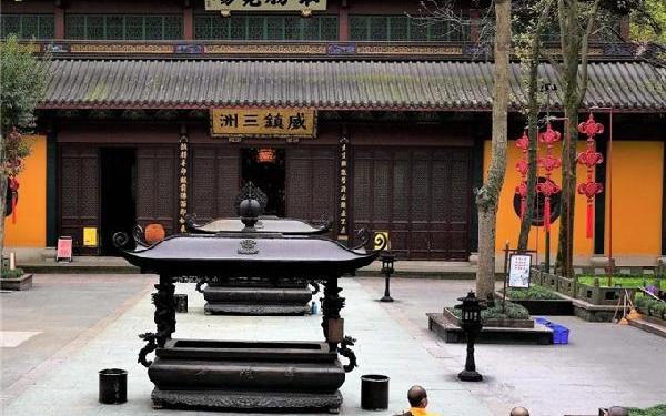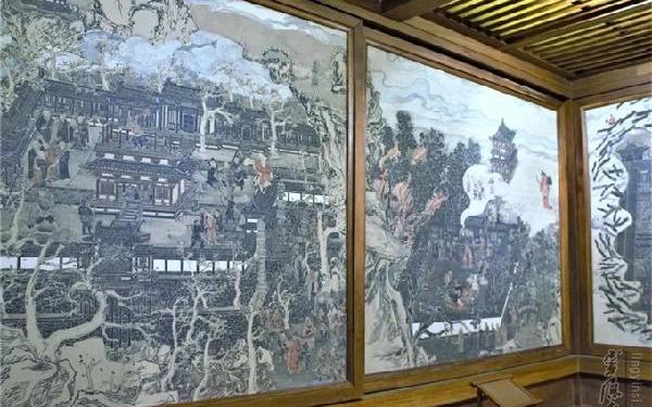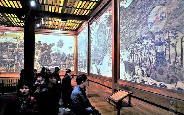 济公殿第九幅壁画——云林胜境图之一 济公殿第十幅壁画——云林胜境图之二 云林胜境图 灵隐凭临钱塘武林山,为印度高僧慧理大师于东晋咸和元年326年创建。虽几经兴衰,然历史悠久,规模恢宏,庄严肃穆的殿宇与寺前的飞来峰浑然一色。 杭州灵隐寺始建于东晋咸和元年(公元326年),至今已有约一千七百年的历史,为杭州最早的名刹。 灵隐寺地处杭州西湖以西,背靠北高峰,面朝飞来峰,两峰挟峙,林木耸秀,深山古寺,云烟万状。 灵隐寺开山祖师为西印度僧人慧理和尚。他在东晋咸和初,由中原云游入浙,至武林(即今杭州),见有一峰而叹曰:&ldq