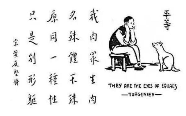 ▲丰子恺《护生画集》 "放生"典出于大乘佛经,放生的根据,最为佛教徒所熟悉的,有两部经。一是《梵网菩萨戒经》,其中提到:"若佛子以慈心故行放生业,一切男子是我父,一切女人是我母,我生生无不从之受生。是故六道众生皆我父母,而杀而食者即杀我父母亦杀我故身。一切地水,是我先身,一切火风,是我本体,故常行放生,生生受生。若世人见杀畜牲时,应方便救护解其苦难,常教化讲说菩萨戒,救度众生。" 另一部《金光明经》卷四《流水长者子品》,也提到有关释迦世尊往昔行菩萨道的一段记载:当时世尊名叫流水长者子,有一天他经过一个很大的池沼,时逢天旱,而且有人为了捕鱼,把