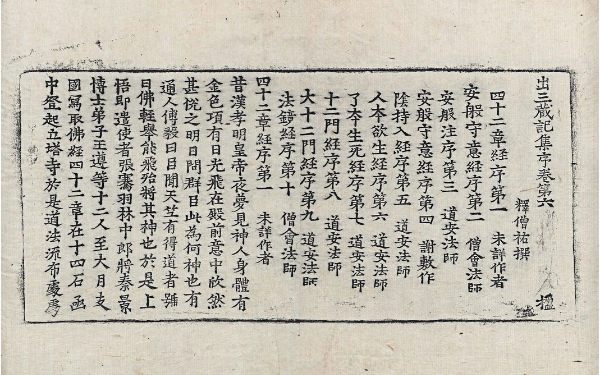 僧佑大师,俗姓俞,祖籍彭城下邳。他于宋文帝元嘉二十二年(445)出生于建康。由于从小受到佛教的薰陶,幼年时即入建初寺,依僧范为师。到了十四岁,至定林上寺,拜时人誉为“法门栋梁”的法达法师为师。年满二十岁,受具足戒,成为正式的出家人。以后又受学于律学名匠法颖律师,潜心钻研律学二十余年,成为闻名于当世的律学大师。南齐竟陵王萧子良常请他讲律藏之学,每次听众皆有七、八百人之多。永明末,他代表朝廷至三吴考核出家的五众。梁朝开国后,对僧佑大师备加礼遇,一切佛教和僧人事务上的疑难大事,梁武帝都会请示他决断。他开创了各寺院造立经藏的传统,并把信众的布施,全用于整治、修缮寺院。僧佑大师颇具巧思,善于佛像的雕凿,